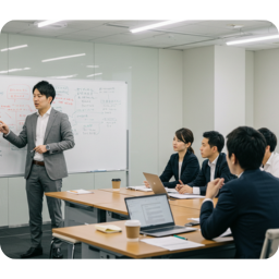 高い専門性を持つ講師陣の研修と監修した動画コンテンツサービスで、新人から中堅社員が短期で知見やスキルを獲得。さらにスキルを身につけるだけではなく、開発プロセスで活かす方法も一緒に教育することでパフォーマンスを受講後の最大化します。さらに時間がない現場でも導入しやすく、継続学習ができる工夫をしています。