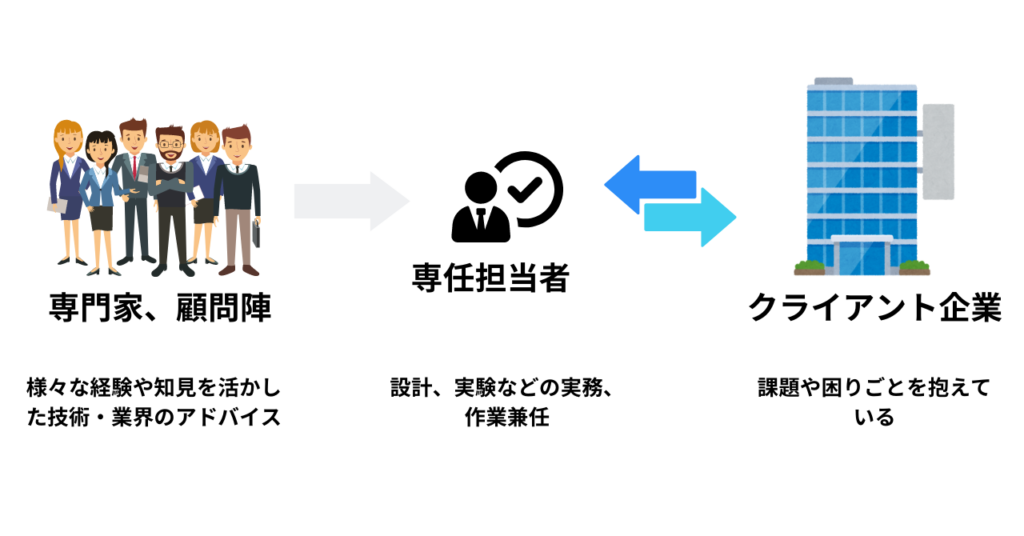 外部知見を借りたいがどこに依頼すればいいかわからない企業へ。開発プロセスの雑務を一括巻き取り、社員の手間や雑務が減り、強みに集中できる――結果、利益率があがり、投資ができるようになる。